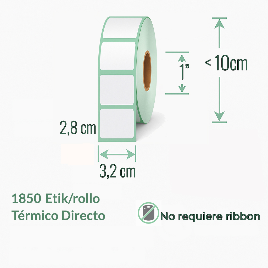 TD, 1" 3.2 x 2.8 cm 1 col 1.850 etiq/rollo cantidad