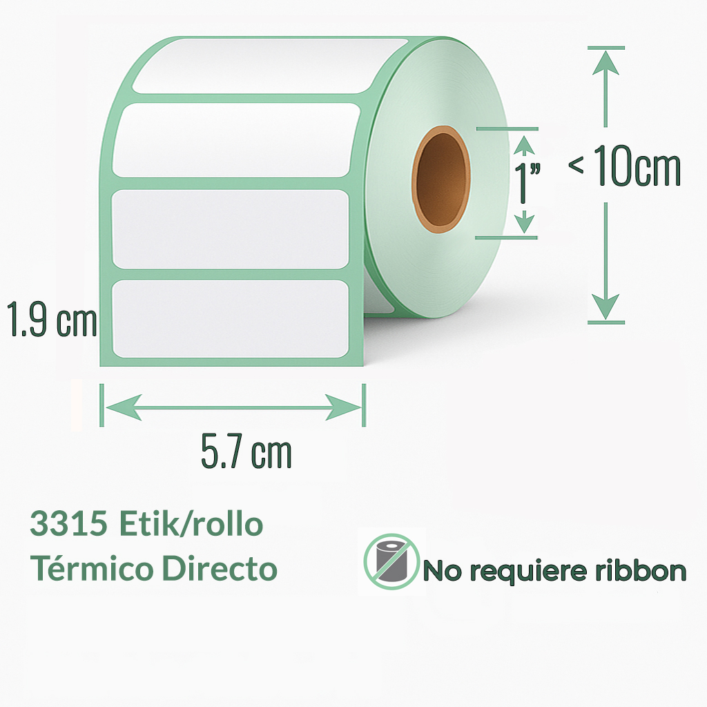 TD, 1" 5.7 x 1.9 cm 1 col 3.315 etiq/rollo cantidad