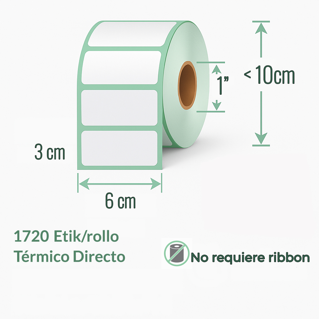 TD, 1" 6 x 3 cm 1 col 1.720 etiq/rollo cantidad